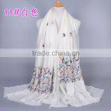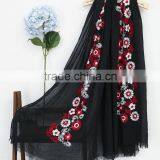 New Style Cotton Viscose Beautiful Flower Design Embroidery Shawl Scarf Quality Choice