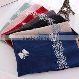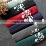 Leisure Japanese Literary Art Style Vintage Plain Flower Embroidery Wholesale Cotton Linen Scarves Quality Choice