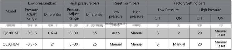 Automatic and Manual Reset Version Dual Pressure Switch