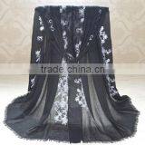 Korea Lady Fashion Flower Embroidery Double Layered Lace Chiffon Scarf