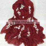 Hot Selling Korea Popular Elegant Flower Embroidery Cotton Pashmina Scarf