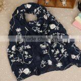 New Style Flower Embroidery Design Fashion Woman Cotton Viscose Scarf