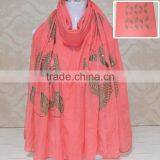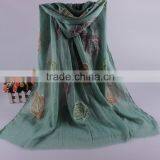 2016 Spring Newest Colorful Leaf Hand Embroidery Designs Cotton Scarves