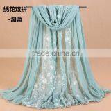 Best Selling Korean Fashion Girl Maxi Small Flower Embroidery Shawl Scarf Quality Choice