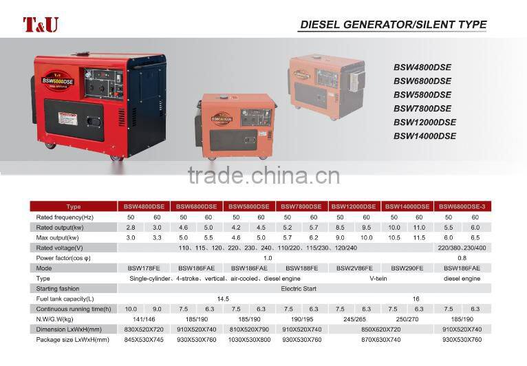 T&U 3kw Diesel Generator Driven by 7Hp Diesel Engine