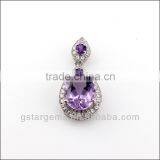 925 Sterling Silver Natural Gemstone Amethyst CZ Pendant Hong Kong Wholesale Jewelry Semi Precious Stone