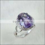 925 Sterling Silver Natural Gemstone Amethyst Rhodium Plated Jewelry CZ Ring Hong Kong Wholesale Semi Precious Stone