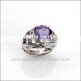 Home > Products > 925 Silver Natural Amethyst Jewelry > 925 Sterling Silver Natural Gemstone Amethyst Rhodium Plated Jewelry CZ Ring Hong Kong Wholesale Semi Precious Stone