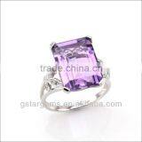 925 Sterling Silver Natural Gemstone Amethyst Rhodium Plated Jewelry CZ Ring Hong Kong Wholesale Semi Precious Stone