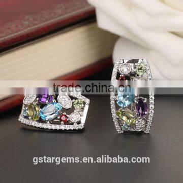 925 Sterling Silver 2.9CT Genuine Gems(Topaz,Amethyst,Garnet,Citrine,Peridot) Handmade Clip on Earring