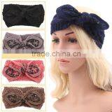 2015 Winter Newest Charm Women's Christmas Gift Knit Elastic Bow Knot Lace Flower Headband