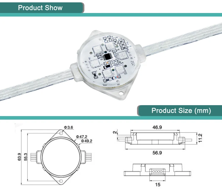 LED light source: Uses high quality SMD or DIP, implant the drive circuit and control circuit into the lights which make installation easy.