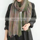New Arrvial Korean Fashion Wrinkle Woven Striped Woman Linen Scarf Quality Choice