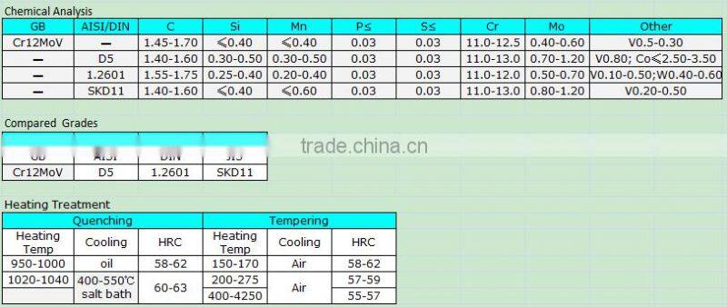 Grade: Cr12MoV 1.2601 D5 SKD11