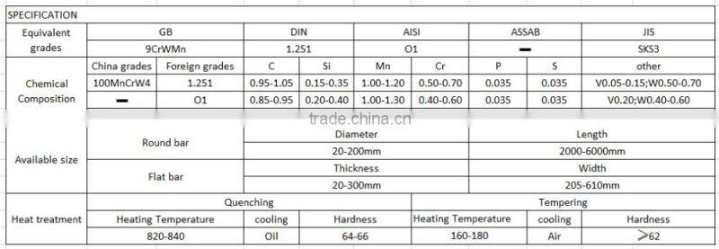 | Brand Name | ENXIANG STEEL | Model Number | O1;SKS3;1.2510;9CrWMn | |