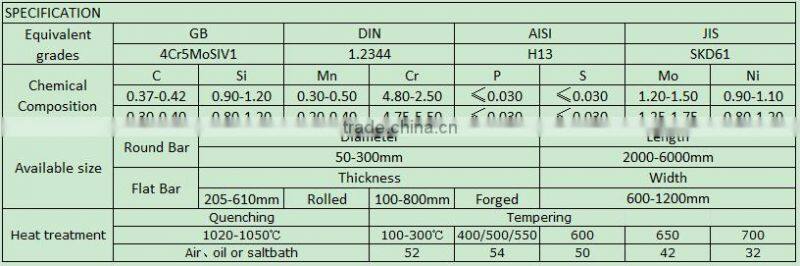 Grade: GB 4Cr5MoSiV1 DIN 1.2344 AISI H11