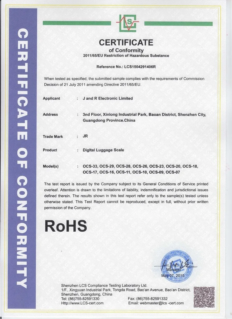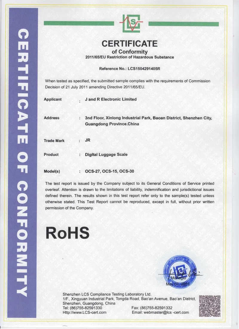 J and R Electronic Co., Ltd located in Shenzhen of China is specialized in manufacturing and supplying electronic scales, luggage scales, kitchen scales, fishing scales, and pocket scales.