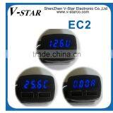 Wholesale Best Quality Portable 2 Port USB Car Charger With Temperature, Voltage and Amper Display
