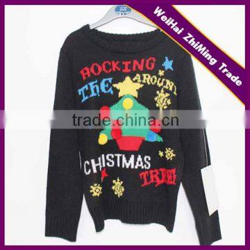 Fashion Acrylic Xmas Tree With Colorful Poms Jumpers,hot Sale Xmas Jumpers