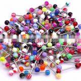 Colorful Stainless Steel UV Acrylic Ball Barbell Tongue Rings Bars Piercing