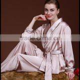 Silk Thin Womens Pink Trousers Nightgown Sleepwear Pajamas Set