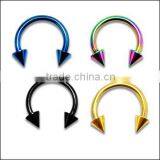Colors Anodized Over 316L Surgical Stainless Steel Curved Eyebrow Ring W/Spikes