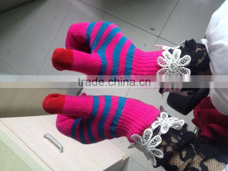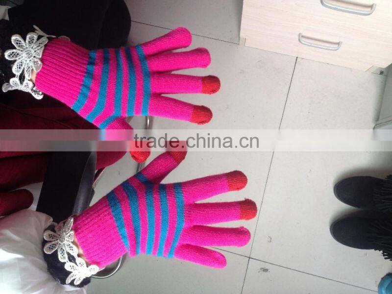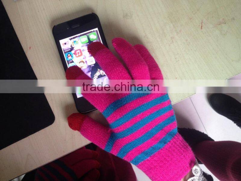 Ladies Knitted Gloves Touch Screen Stripe Gloves Texting Capacitive Smartphone