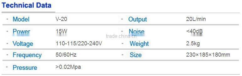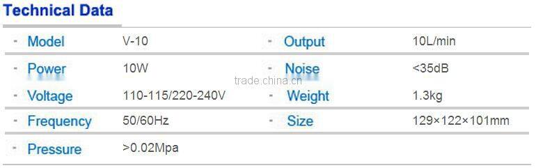 1. The features of V series super silent power air pump:Adopts high quality aluminum alloy to make its case. It adopts double damping system and noise-absorbing system.