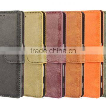 PU Leather With Magnet Stand Case Vintage Retro Dull Polish Folio Flip Holder Cover for Sony Xperia Z5