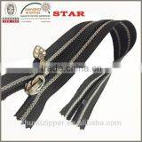 | Material | Plated metal teeth +polyester tape + znic and alloy auto lock slider black nylon zipper with silver teeth |