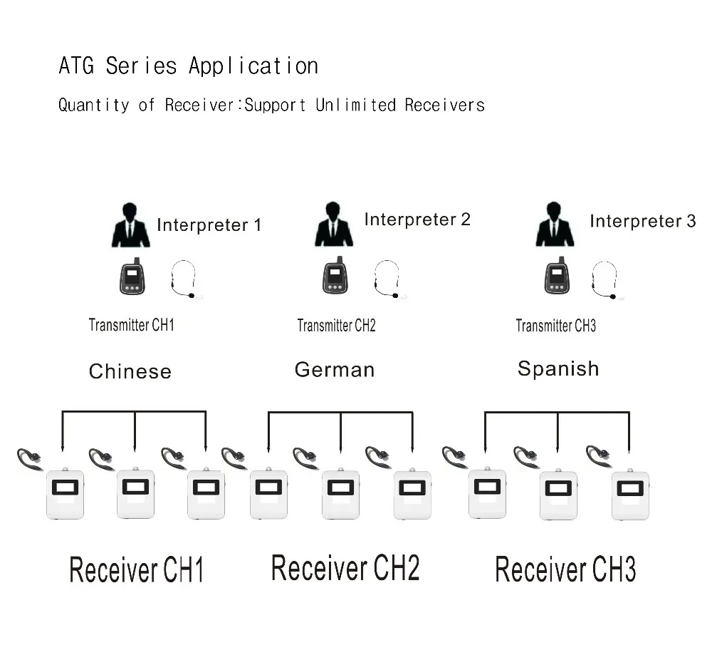 Different from other similar products on the market, our all products is real digital transmission; it will not get interfered each other and Wi-Fi. It can support multi groups’ use at same time and no interfered with each other.