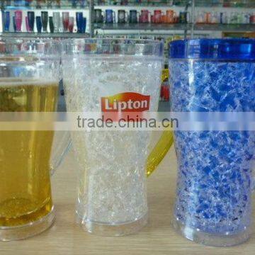 14 oz 400ML Plastic double wall ice gel frosty beer mug freezer mug frosted mug