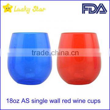 BPA free 18oz plastic single wall red wine cups with lid and FDA standard