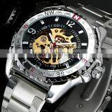 2015 China Supplier Fashion Brand Stainless Steel Skeleton Mechanical Automatic Man Watches For Men Sport Watch WM420
