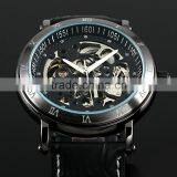 Mens Fashion Black Leather Skeleton Mechanical Watch WM430