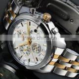 2015 New Gold Dial Skeleton Automatic Mechanical Watch Stainless Steel Sport Men Fashion Watches WM426