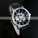 2015 Top Genuine Leather Strap Stainelss Steel Automatic Mechanical Movement Luxury Skeleton Watch Men Accept Paypal WM416