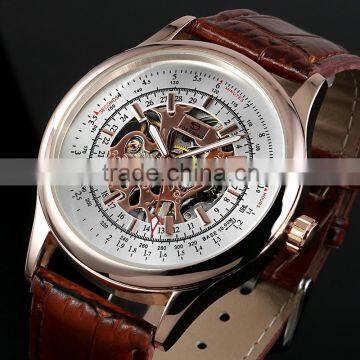 2015 Luxury Watches Men White Face Leather Skeleton Watch WM403