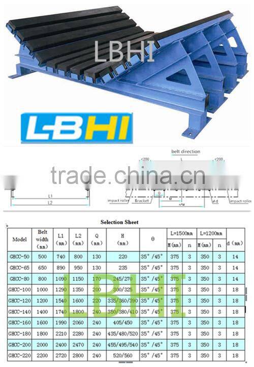 l.The impact bed is mainly made up of impact bars, reinforced channel steel,supporting frame ,joints and so on. The impact bars are made of rubber bars and Ultra High Molecular Weight PU with special vulcanization technology. The rubber bars are made of rubber and frame by heat vulcanization, where the frames are made of special structural steel and used for increasing the strength and connection performance of rubber bars. The reinforced channel steel supports and protects the buffer bars. The supporting frame is designed and manufactured according to size of belt conveyors and trough angle of belt, which is fixed on the supporting frame of conveyors, supporting and strengthening the reinforced channel steel and impact bars.