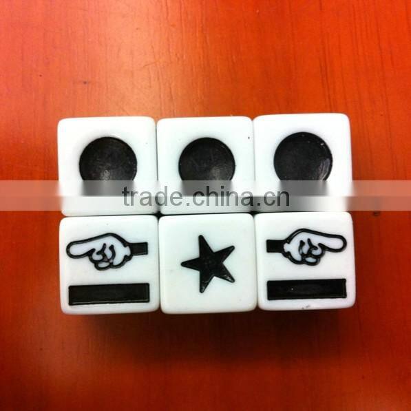 Our company accept custom personality dice, according to different buyers demand custom-made of different specifications, colours, provides injection or sheet cutting manufacturing, using international standard non-toxic paint paint, materials and products meet environmental quality standards, the large scale factory, the male strength thick, monthly production reached 1000 million, the company is independent production factory, has 10 years of dice production experience, welcome the business people to visit our company!