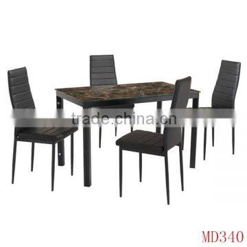 Cheap Simple Design Glass Top Metal Dining Table Set