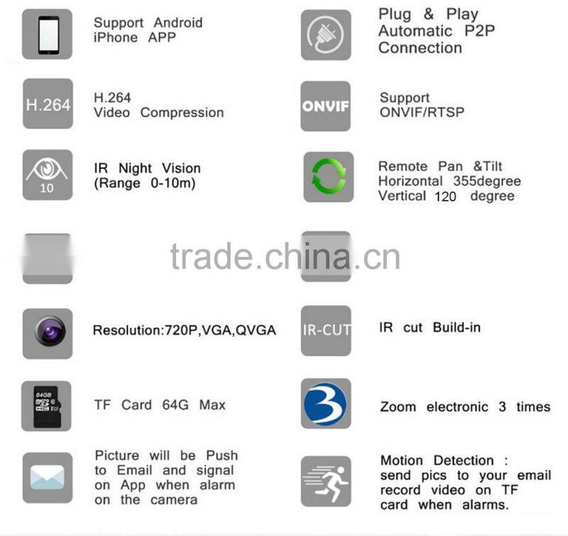 Wireless IP Camera With HD 720P IR Cut and Alarm Functions