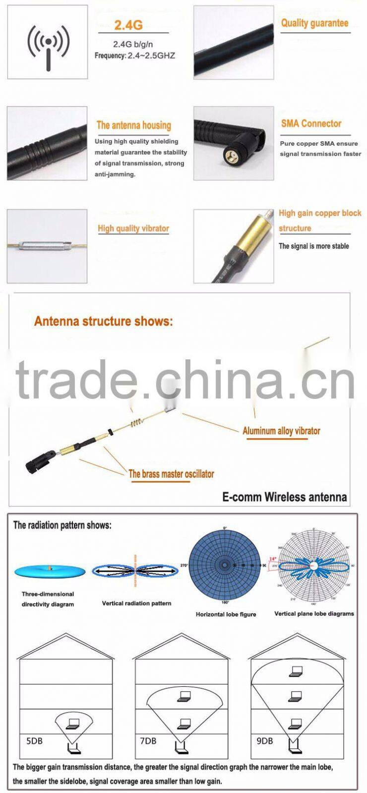 2.4ghz 7DB high gain dbi wifi Antenna, WLAN Wifi moden router antenna, sma male connector