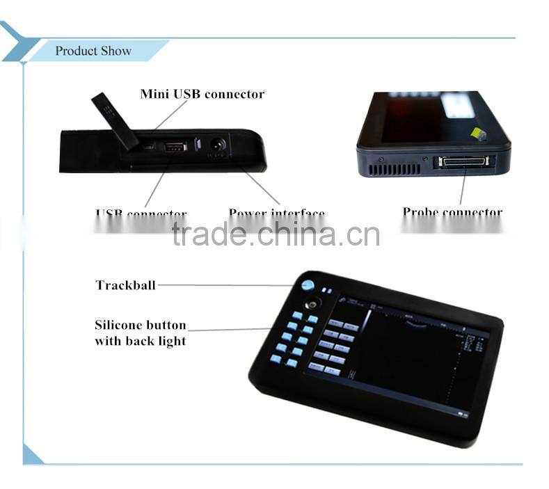 Portable ultrasound machine has a more compact structure, the palm design makes it easier to carry and operate. Adopting the latest techniques, the machine can realize a crystal clear, stable and high resolution imaging function. With optional and external probe, it can be used for abdominal organs, transvaginal examination, also other parts of body. And relative software for people or animals are both available.