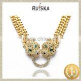 Gold Plated Chain Crystal Two Leopard Head Pendant Necklace