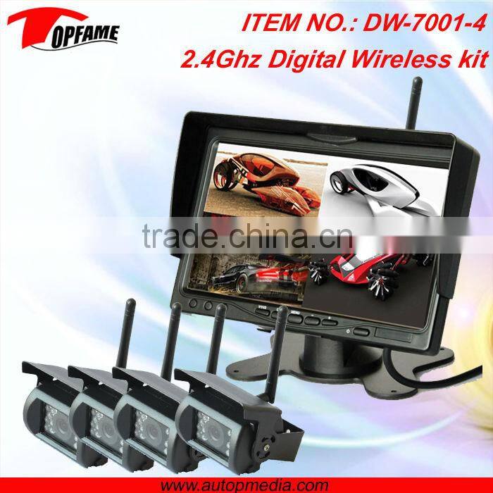 DW-7001-4 7inch screen digital reverse camera wireless for truck with DVR recording, QUAD function, confidential signal , ideal for reversing, monitoring office, home, shop, etc.