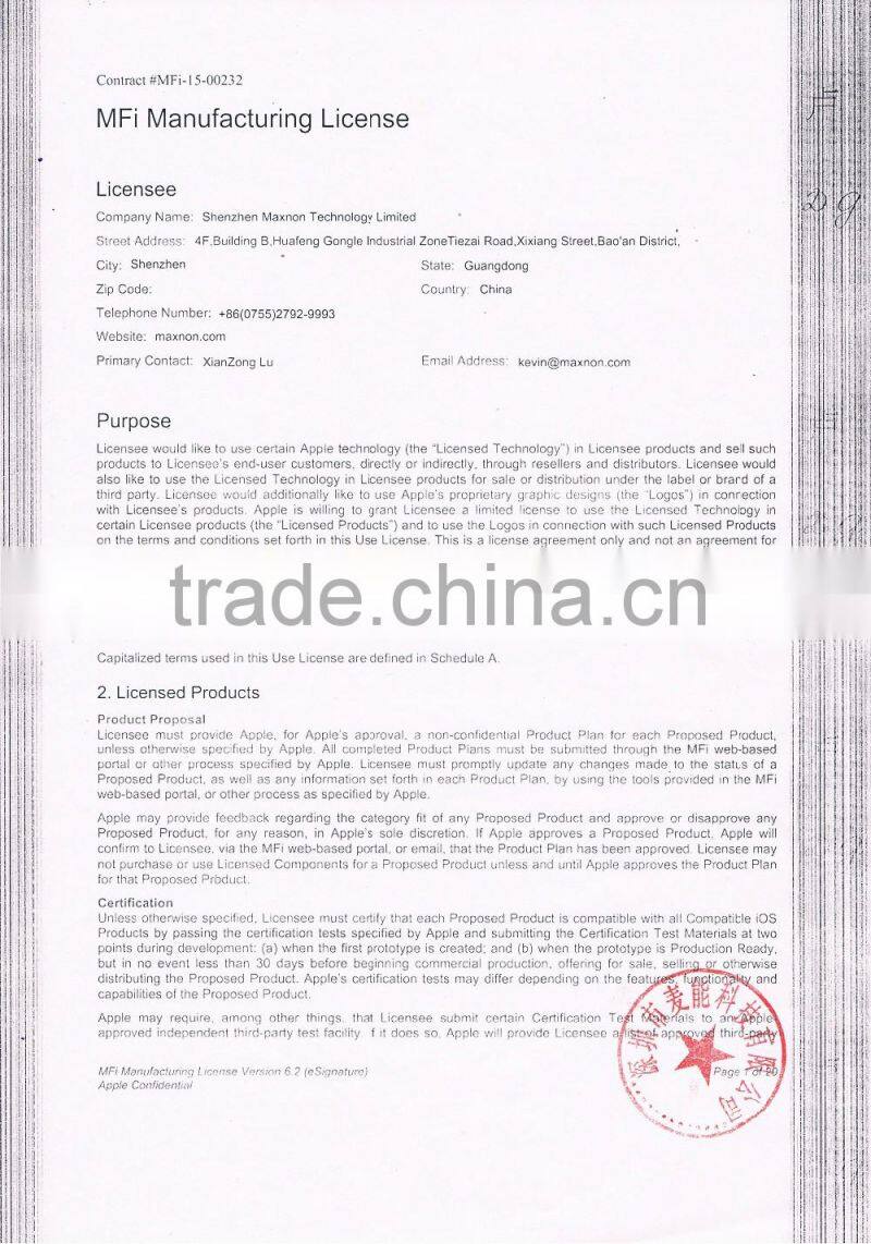 Shenzhen Maxnon Technology Limited has earned the license to manufacture Mfi Battery Cases and Smart Chargers.Our company was established in Shenzhen China September 2009.We focus on quality, service and reliability has made us as a leader in the Mfi battery industry.We look forward in establishing long lasting relationships with our customers