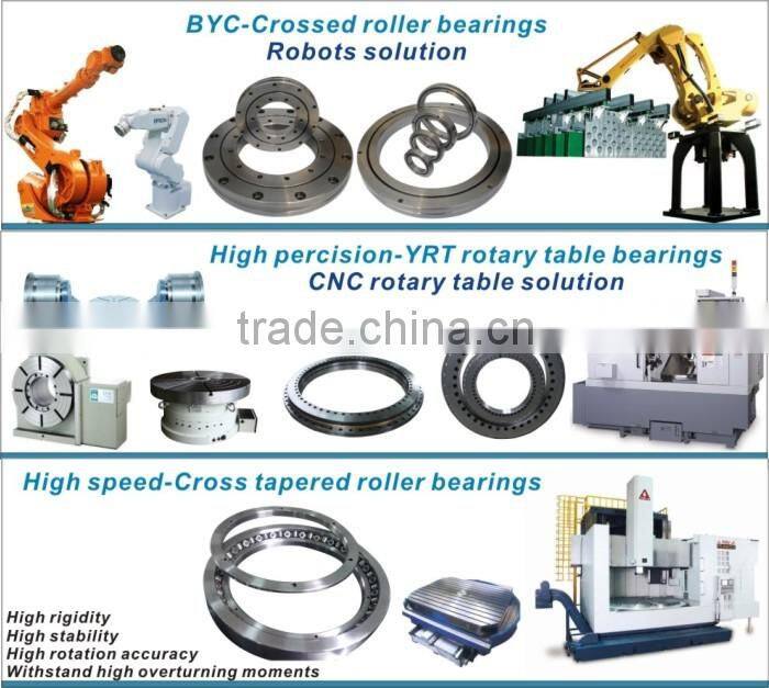 Luoyang BoYing Bearing Co., Ltd,(BYC) is a professional manufacturer of high precision bearings, The main products of our company are Crossed roller bearings, YRT Rotary Table Bearings, Crossed Tapered Roller Bearings, Angular Contact Ball Bearing, Ball Screw Bearings, Slewing Bearings, Cylindrical Thrust Roller Bearing. The leading products include Crossed roller bearing RB, RE, RU,RA,CRBC, CRBH, XSU, SX series, rotary table bearings YRT, YRTS,YRTM,ZKLDF series, crossed tapered roller bearing JXR, XR series, almost whole range of precision bearings. The accuracy grades are P5, P4, P2, and the size of inner ring are ranging from Φ50mm --- Φ1300mm. Our products are optimal for applications such as joints and swiveling units of industrial robots, swiveling tables of machining centers, precision rotary tables, medical equipment, measuring instruments and IC manufacturing machines,mainly to replace the imported bearings. Also, we can design,choose and manufacture non-standard,large size precision bearings as customer requested.