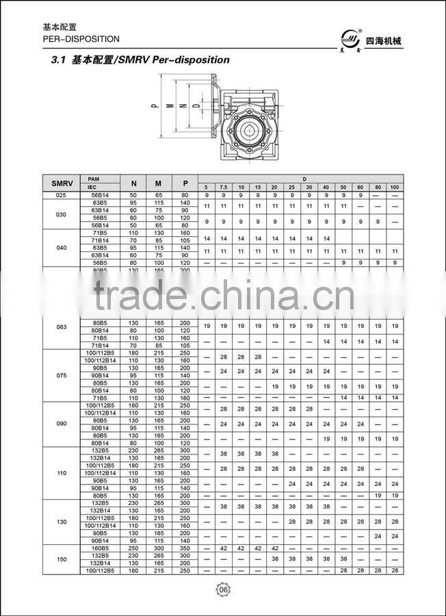 0.55kw 1400rpm | NMRV090 | 40 | 35rpm | 114.0N.M |