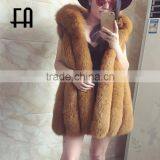 Factory Direct Fashion Natural Fox Fur Overcoat With Hood